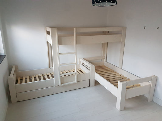 Onze 3-persoonsbeddenOnze op maat gemaakte 3-persoons bedden zijn uitstekend voor ieder interieur. Voorzien van uw favoriete kleur en passend in uw kamer.